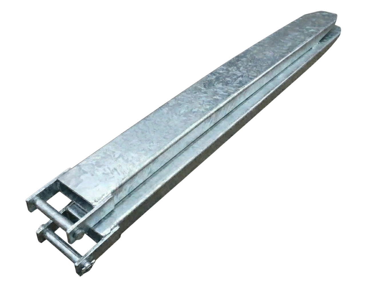 Každé prodloužení vidlic z naší nabídky se vyznačuje promyšlenou stavbou. Přední část nástavce je seříznuta pod úhlem 45 stupňů a profesionálně zaslepena, což výrazně usnadňuje vjíždění do palet, zatímco zadní část zůstává otevřená pro rychlou montáž. Prioritou je bezpečnost, proto byl použit spolehlivý systém blokády. Ten se skládá z pevného čepu (tyč fí 16), který se provléká za patou vidlice a zajišťuje závlačkou. To eliminuje riziko sklouznutí nástavce během manévrování. Je třeba pamatovat na to, že podle norem musí originální vidlice tvořit podpěru v délce alespoň 60 % celkové délky namontovaného prodloužení.