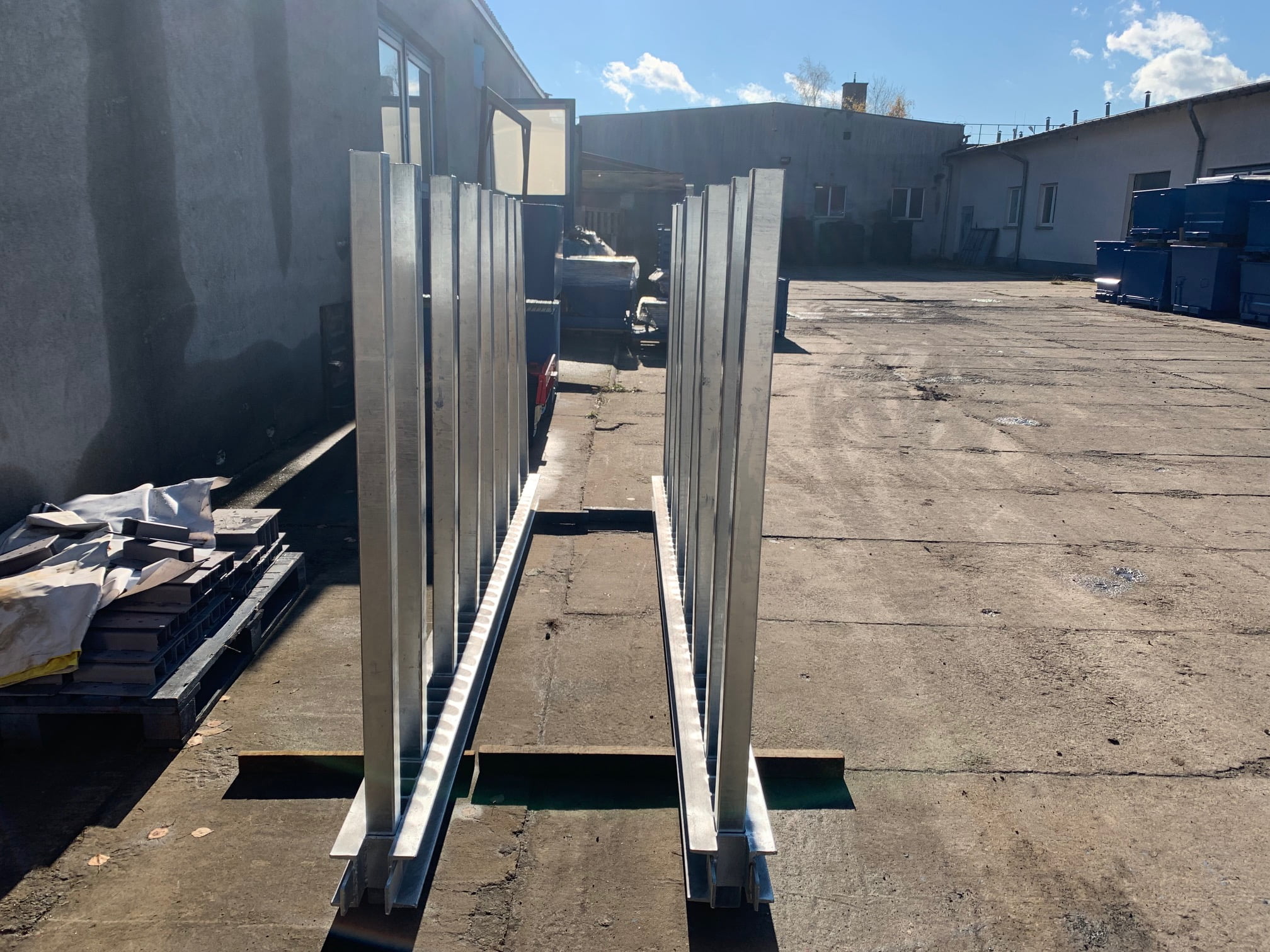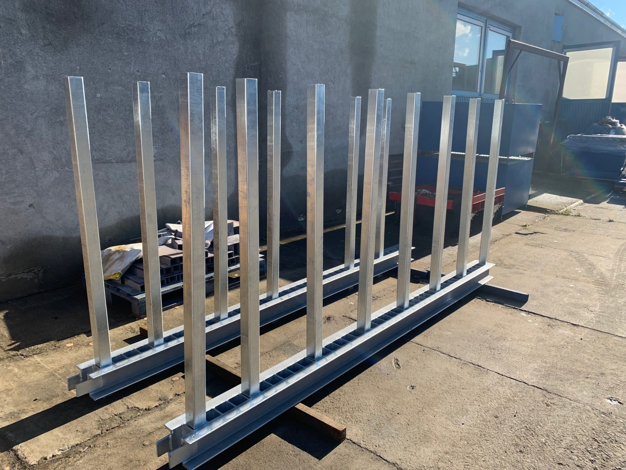 Stojan na kámen TPM je solidní konstrukce sloužící k uskladnění kamenných desek. Skládá se ze 2 ocelových lišt o délce 3000 mm. V každé z nich se nachází 41 otvorů. Ty slouží k montáži sloupků, kterých je v sadě celkem 16 ks. Všechny jsou vyrobeny z profilu 60x60x3 a jsou vysoké 1500 mm. Dodatečnou výhodou je naklánění podpěr pod mírným úhlem spolu se skladovaným zbožím. Podpírají tak celou plochu desek, což minimalizuje riziko praskání desek nebo jejich deformace. Všechny prvky jsou antikorozně chráněny procesem žárového zinkování, což zajišťuje odolnost a dlouholeté používání.