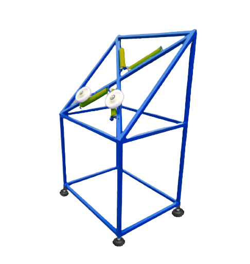 Otočné válečky s regulací: Stojan má speciální otočné prvky (kola), jejichž výšku lze nastavit. Umožňují volné otáčení disku během práce bez nutnosti jeho sundávání nebo zvedání.