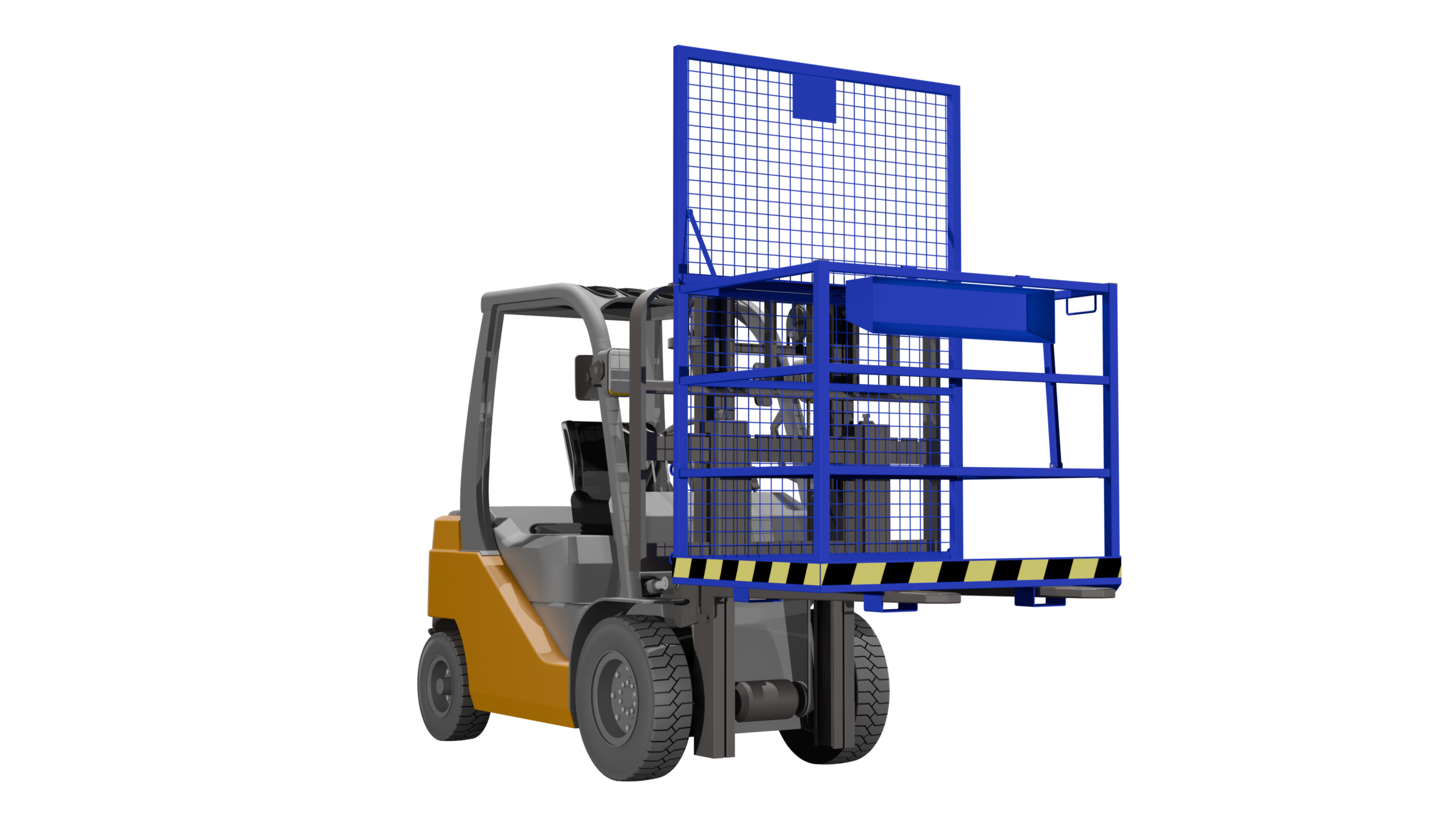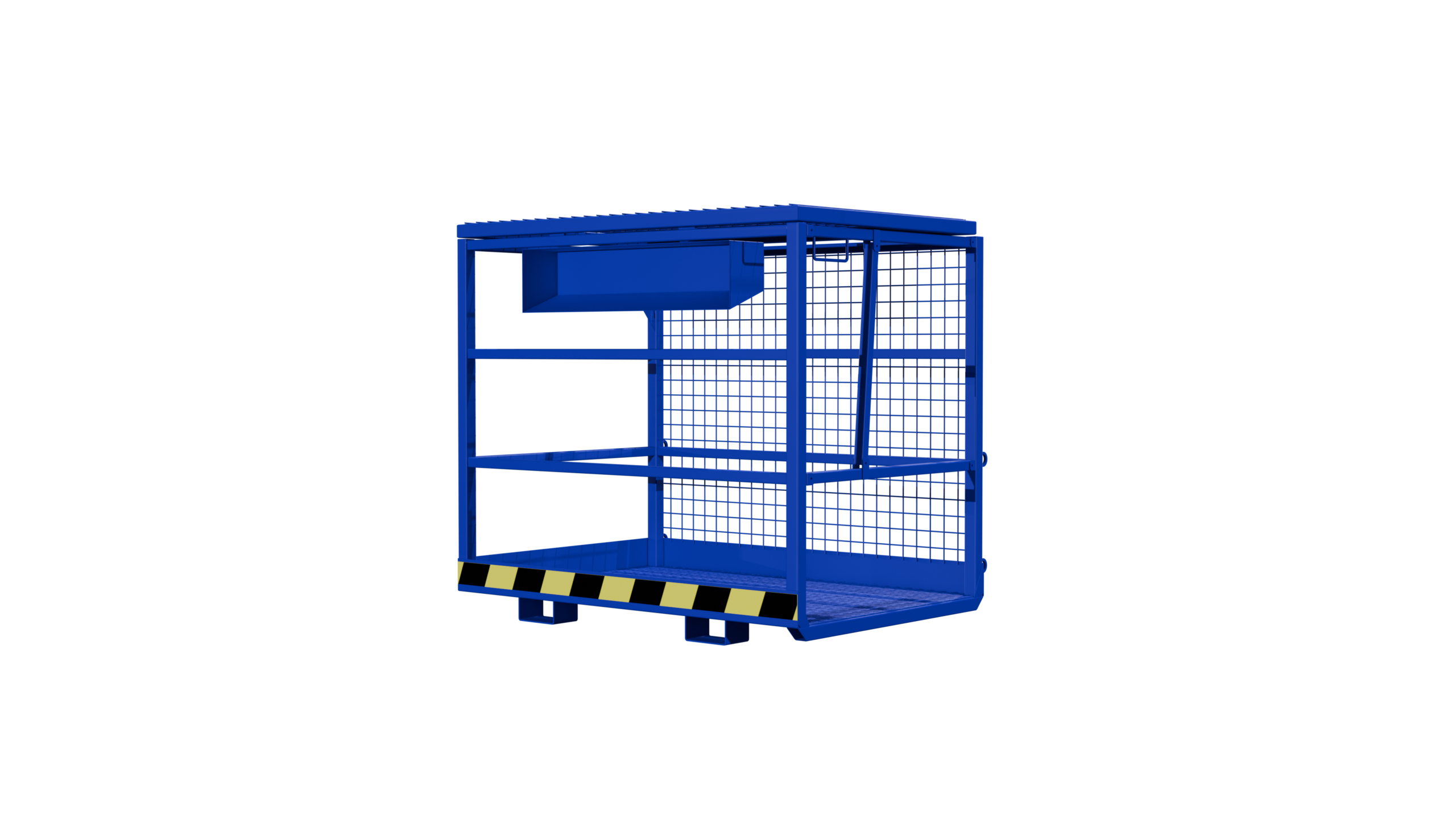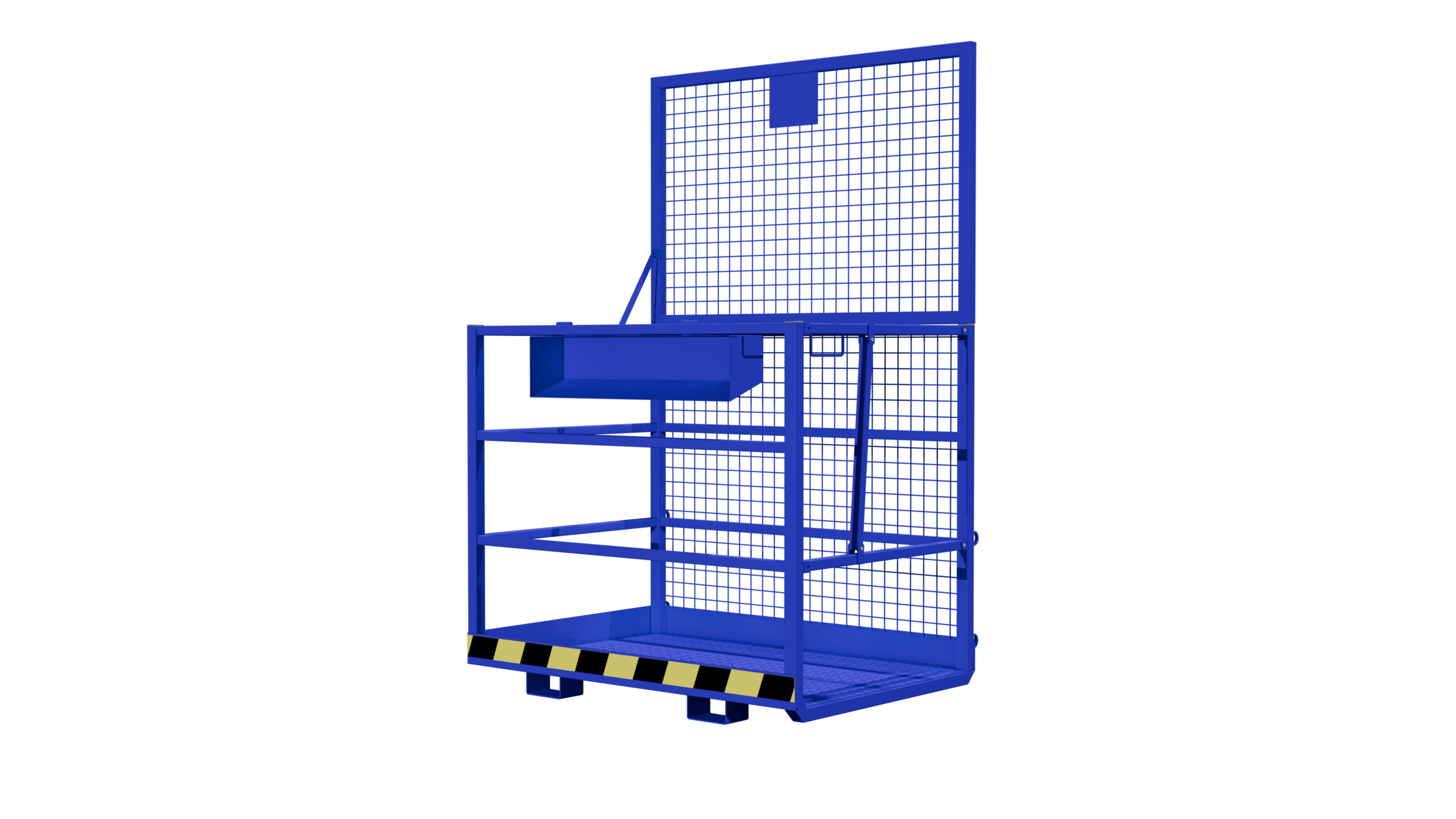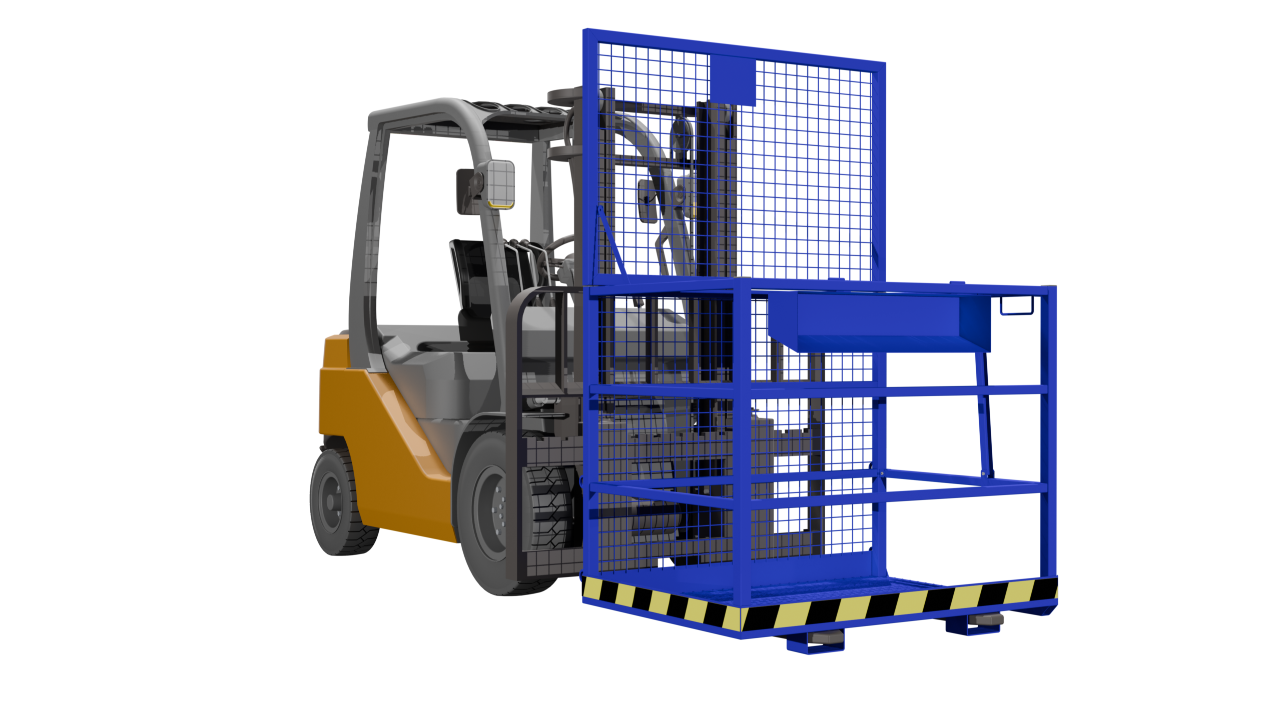 Die Arbeitsbühne 300 ist ein fortschrittlicher Arbeitsplatz für die Höhe, konzipiert für Anwender, die mehr Platz und maximale Stabilität benötigen. Es handelt sich um eine erweiterte Version des Anbaugeräts, die eine massive Bauweise mit Funktionalität verbindet und das sichere Heben von Mitarbeitern mitsamt benötigten Werkzeugen und Materialien mittels Gabelstapler ermöglicht.