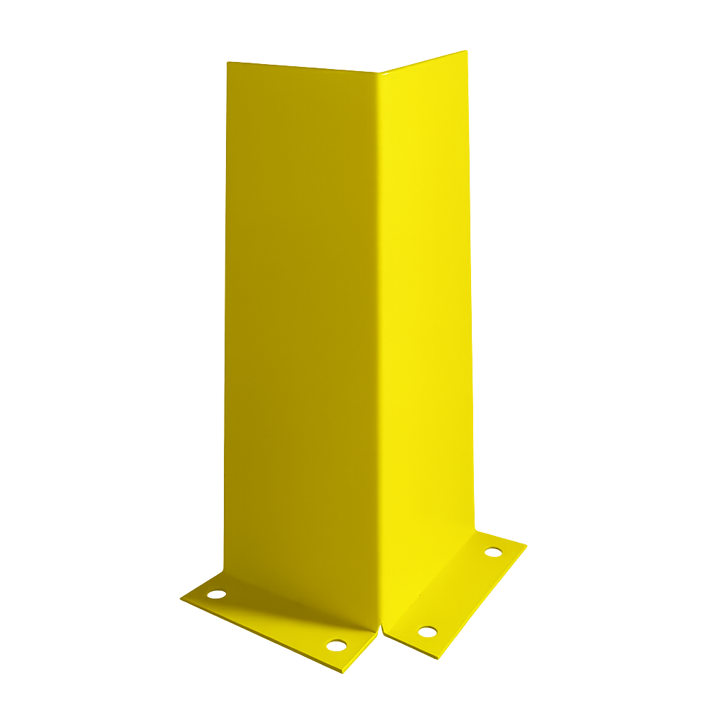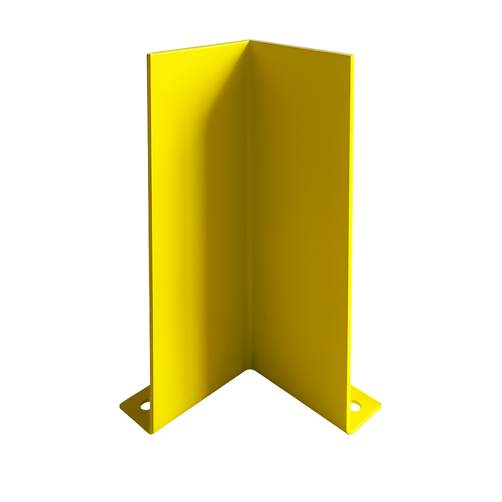 Zgodnie z przepisami BHP, elementy wystające i stwarzające ryzyko kolizji muszą być odpowiednio oznakowane. Nasza odbojnica narożna do regałów jest malowana proszkowo na kolor żółty ostrzegawczy (RAL 1021). Intensywna barwa sprawia, że osłona jest doskonale widoczna dla operatorów wózków nawet w słabszym oświetleniu, pełniąc funkcję prewencyjną – pomaga uniknąć kolizji, zanim do niej dojdzie.