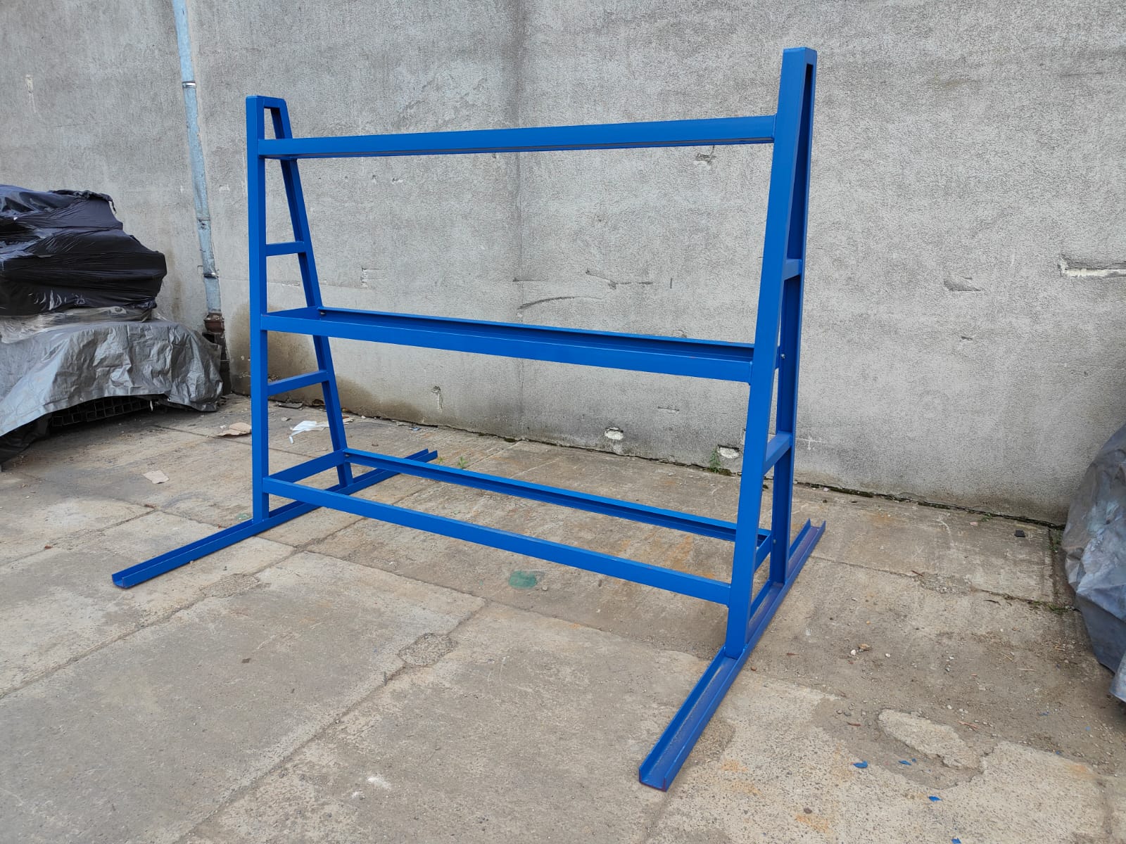 Despite being dedicated to the stone industry, this structure is extremely universal. Its wide spacing and stable support make the rack perfectly suited for storing and transporting other oversized products. It is successfully used in the joinery industry for the safe storage of finished doors, windows, or large glass sheets, providing stability that standard racks cannot guarantee.