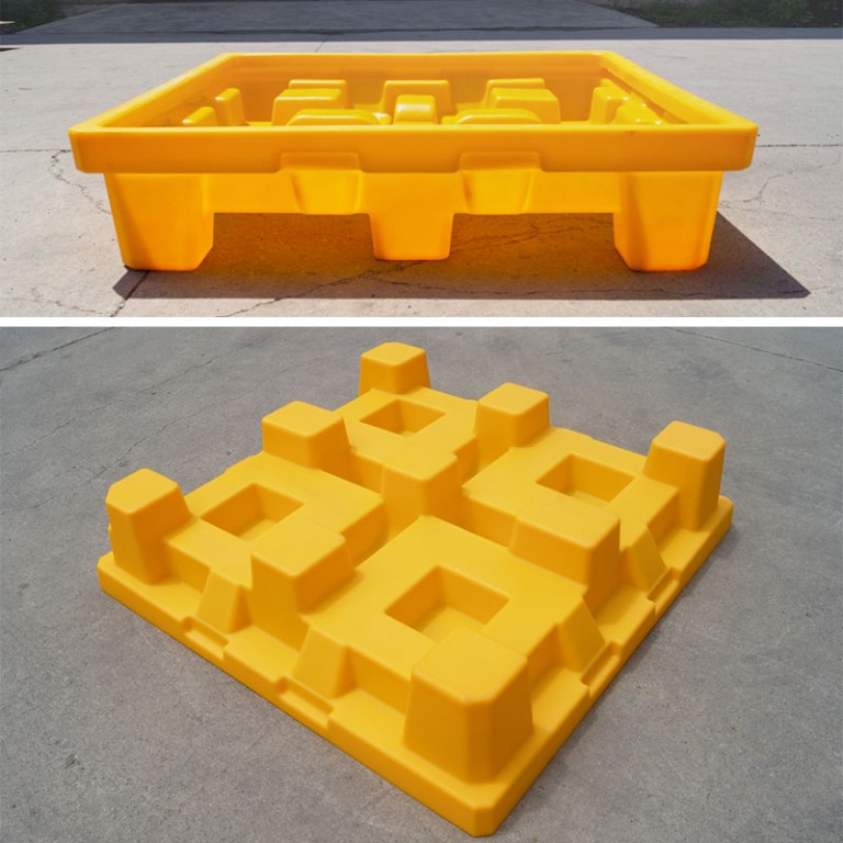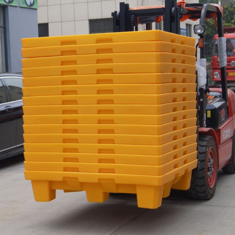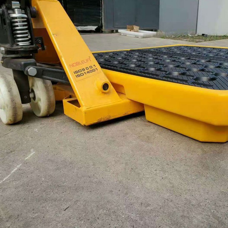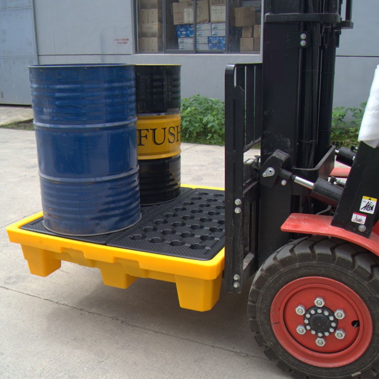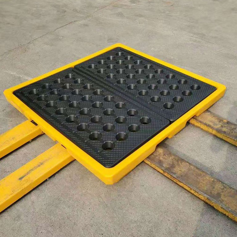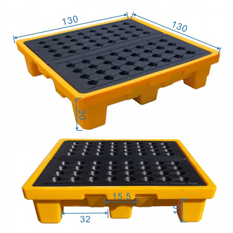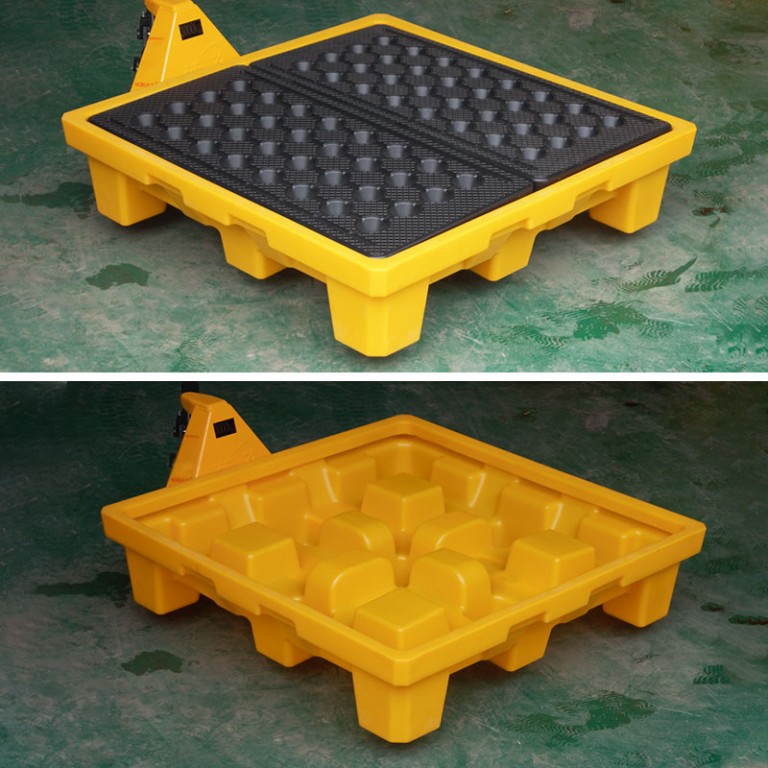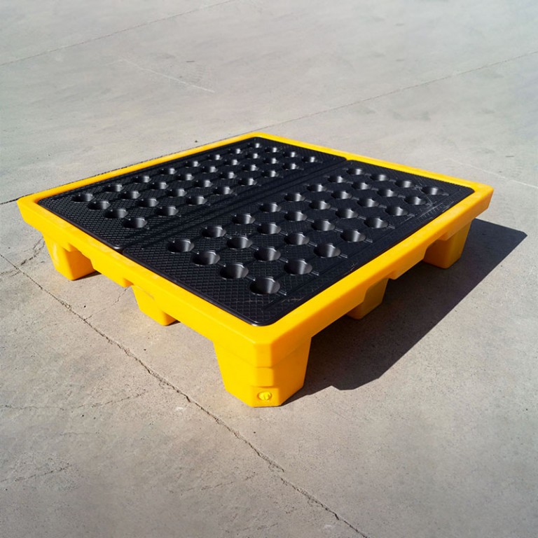 Plastic spill containment pallet designed for the storage of up to four 200-liter drums. Available in two containment capacity options – 180 liters and 260 liters. The product is designed for handling with a forklift or pallet truck.