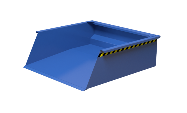 Despite its size, the shovel is simple to operate and requires no complicated installation. Discharge occurs by gravity after releasing the lock using a manual lever located at the rear. A tipping angle of approximately 70 degrees ensures the fast and total discharge of the contents. The shovel features a robust lock that protects against uncontrolled tilting while driving with a full load. Coating durability is ensured by polyurethane paint.