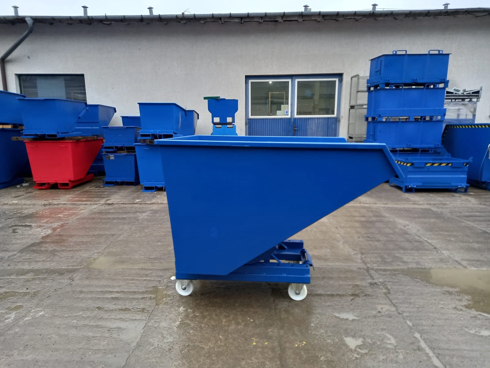 Every NTK 1100 self-tipping skip is protected against corrosion by spray-painting with polyurethane paint. This coating is characterised by high resistance to weather conditions, moisture, and chemicals. Additionally, polyurethane creates a smooth, glass-like surface, which significantly facilitates cleaning – waste does not adhere to the walls, and the tank is easy to maintain in a hygienic condition.
