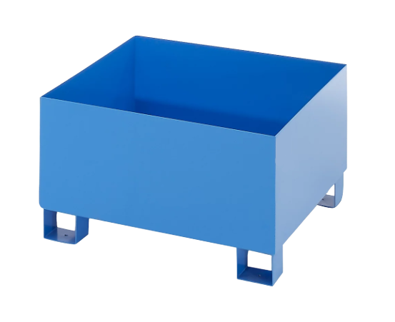 The tray is equipped with structural feet that allow safe transport using manual pallet trucks and forklift trucks. They also provide sufficient clearance from the floor, facilitating easy handling of the tray within warehouse spaces. The entire surface of the tray – both internal and external – is coated with a polyurethane paint, which serves as effective corrosion protection and shields the steel from moisture and aggressive chemical substances.